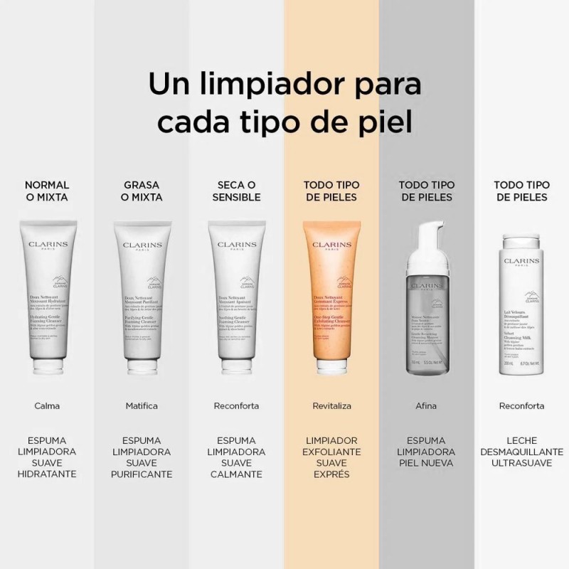 Este limpiador 3 en 1 está enriquecido con extractos de hierbas alpinas procedentes de la Hacienda Clarins y desmaquilla, limpia y exfolia todo tipo de pieles en un solo gesto a la vez que preserva el equilibrio cutáneo.