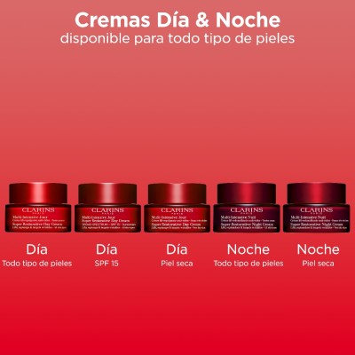 Nueva innovación que actúa sobre todos los signos visibles de la edad, acelerados por los cambios hormonales. Tratamiento experto para pieles secas. Su fórmula mejorada permite recuperar la densidad de la piel combatiendo contra el descolgamiento. Nuevo poderoso dúo de extractos redensificante y tensor: extracto de Harungana bio y Árgoma bio. La piel se ve y se siente flexible y confortable al instante. Reactiva y estimula la microcirculación de la piel para potenciar su luminosidad y recuperar su densidad gracias al extracto de Yema de Serbal bio. Noche tras noche, redensifica la piel en todos los niveles, proporciona un efecto tensor y unifica el tono de la tez.
