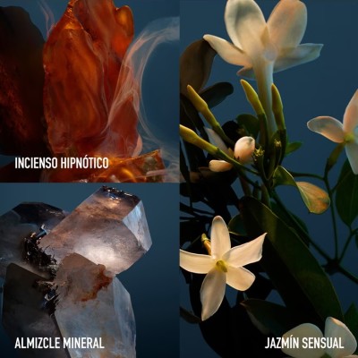 Lentamente se funde con notas de Jazmín, Incienso y Pachuli, generando un aura cálida y seductora.Por último, un fondo de Almizcle, Sándalo y Benjuí da paso a un aroma limpio y fresco, sumamente extraordinario.