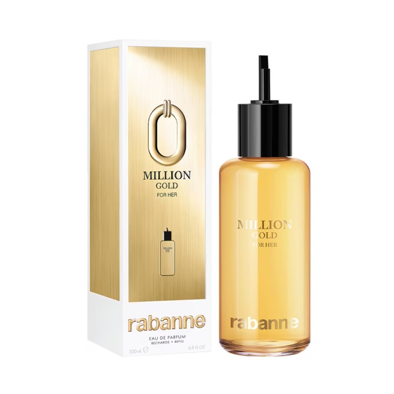 El frasco multifacético de Million Gold for Her perfume es demasiado preciado para deshacerte de él una vez te hayas perfumado con la última gota. La nueva fragancia es recargable, con un frasco de recarga de 200 ml para rellenar tus formatos de 90 ml y 50 ml.