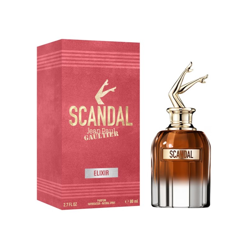 En primera clase del Scandal Express, las cortinas están corridas, las reglas abolidas y el lujo llevado a su máxima expresión. Aquí, todo es más intenso, más brillante, más provocador. Un teatro de excesos donde solo las más indisciplinadas tienen acceso. Pero solo una dicta las reglas. Scandal Elixir impone una sensualidad sin medida. Nada se mueve sin su consentimiento. Todo en ella celebra el exceso. Lujo sin límites. La exuberancia como primera naturaleza. Su fragancia se impone: el destello agridulce de una mora carnal, la elegancia cortante del iris, la profundidad del pachulí. Un estela reservada a las iniciadas. Es intenso. Es ardiente. ¿Demasiado? Perfecto: es lo que ella quería.