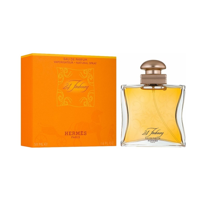 24 Faubourg de Hermes es un "Eau de Parfum" femenino perteneciente a la familia Chipre Floral, que con su particular aroma nos transmite la conexión que surge entre el frescor húmedo del rocío y las blancas flores que disfrutan del cálido sol del mediodía.
