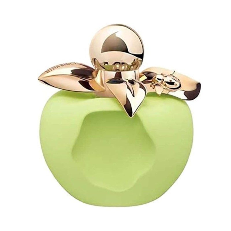 El icónico frasco con forma de manzana de Nina Ricci se transforma para esta edición en una delicia escarchada. Con un acabado verde lima mate que evoca la textura del hielo, presenta un mordisco lateral que revela la tentación de su interior. Está coronado por hojas doradas sobre las que se posa una delicada mariquita, símbolo de la suerte y la naturaleza lúdica de Bella.