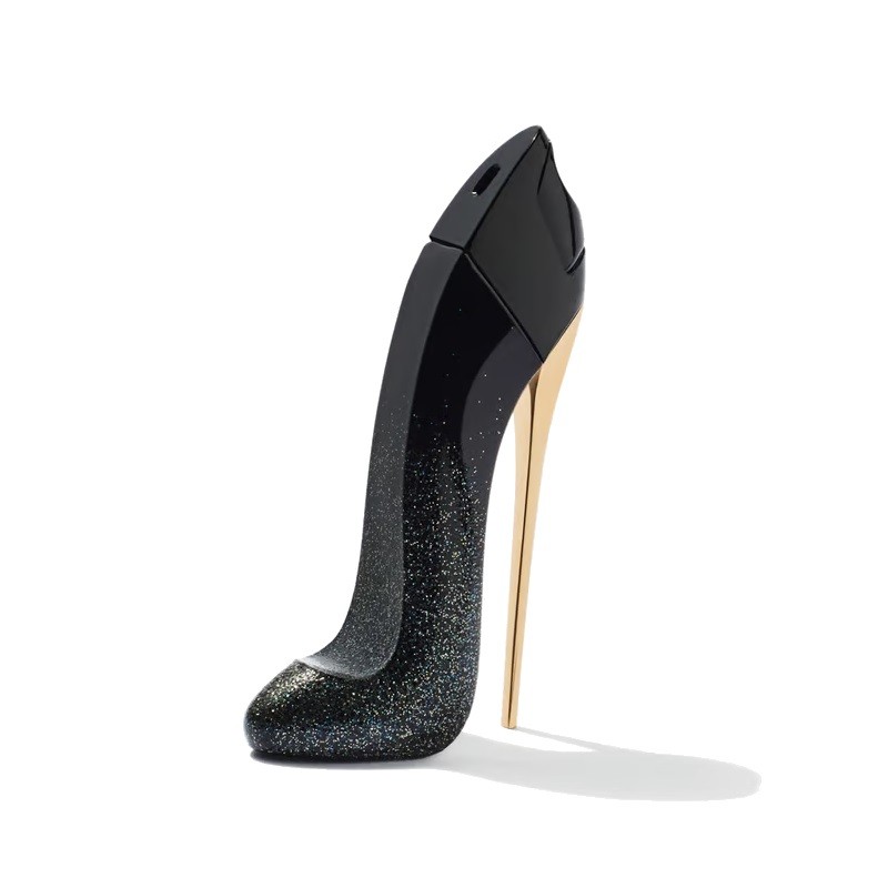 El icónico frasco de tacón de aguja se eleva a un nuevo nivel de lujo con un deslumbrante acabado negro con glitter, evocando la noche estrellada y la elegancia más descarada. Es un objeto de deseo que brilla con cada movimiento, simbolizando el magnetismo irresistible.