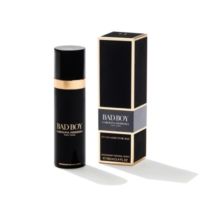 Bad Boy desodorante spray de Carolina Herrera. Con un aroma de audacia sutil y duradera, el Desodorante Bad Boy aporta otra dimensión al cuidado de la piel y mantiene las axilas frescas todo el día y la noche.