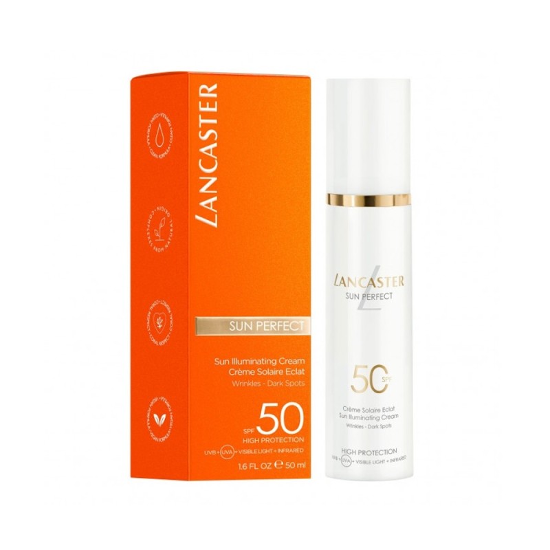 La evolucionada fórmula de Sun Perfect Sun Illuminating Cream SPF50 ofrece la exclusiva y avanzada tecnología Full Light de Lancaster, que actúa frente al 100 % del espectro solar, junto con la tecnología antiedad, el sistema de reparación solar de origen natural y el complejo potenciador de luminosidad.